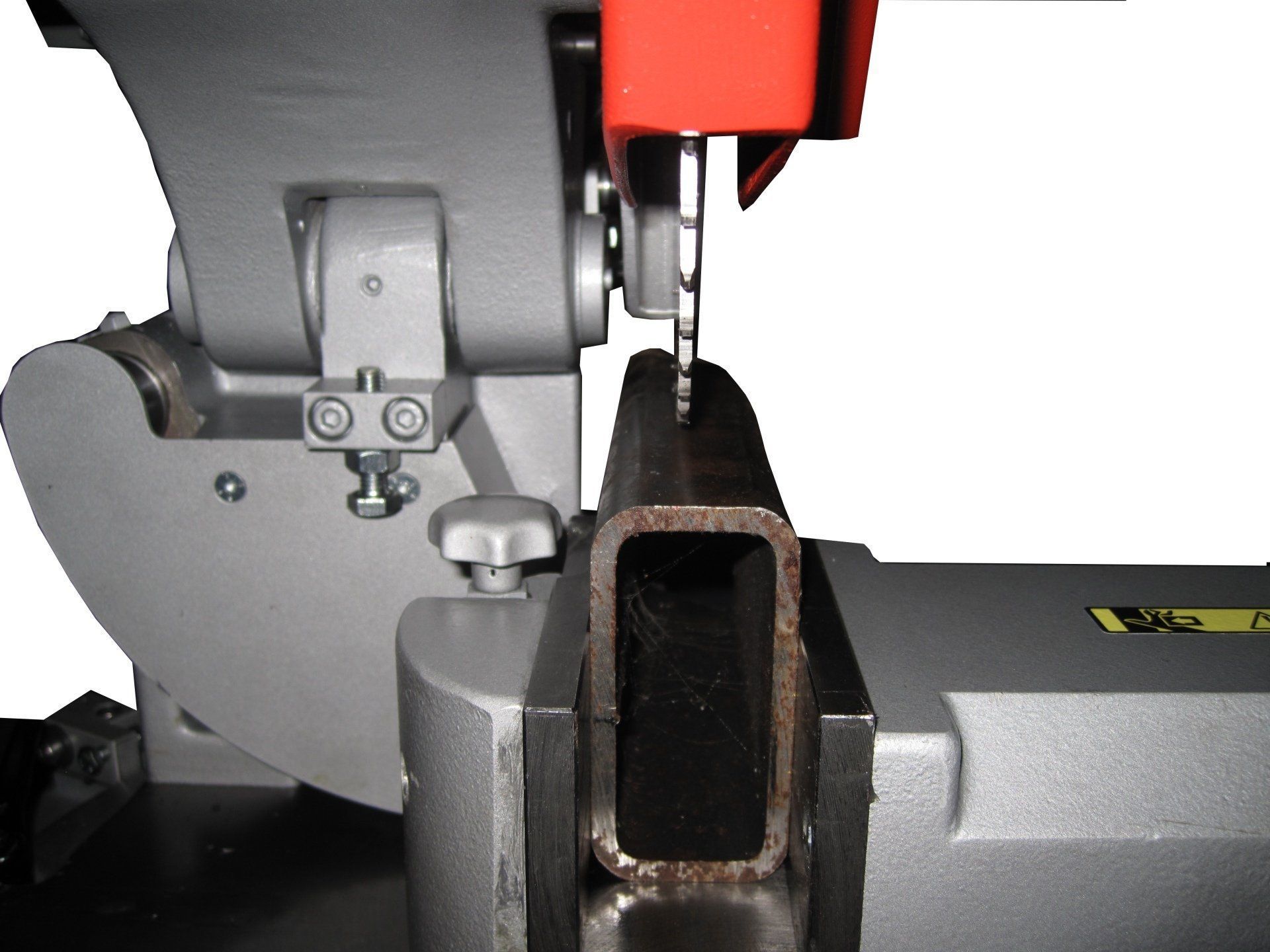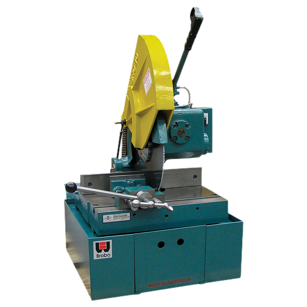 350 mm x 40 mm - Production saw with automatic down feed . Powered saw head with quick forward motion, adjustable power stroke and quick return. Pneumatic control system with two air vises, tow-hand safety start and emergency stop.
