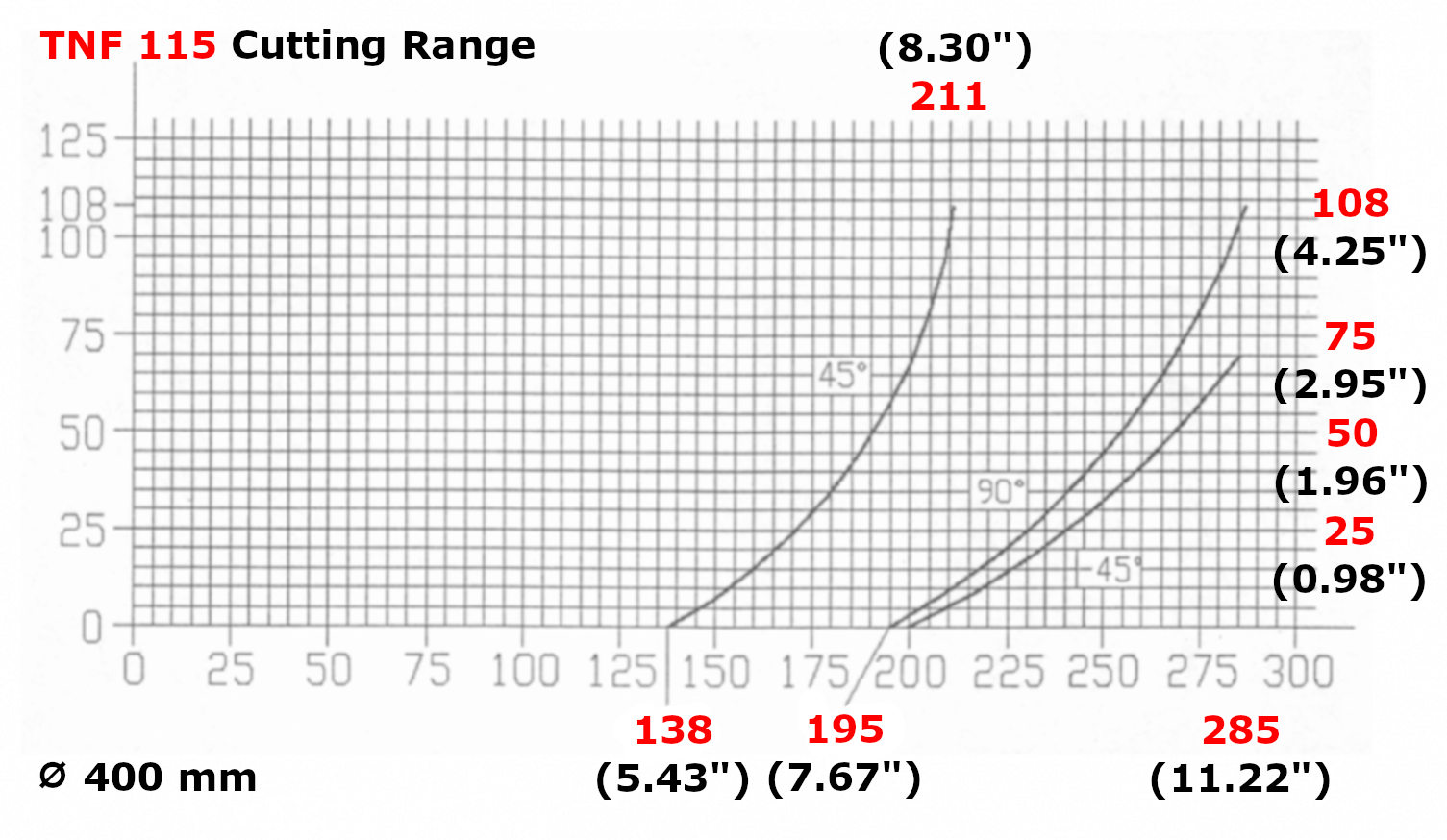 - Mitering 45° left, straight 90° and 45° right with rapid adjustment bumpers